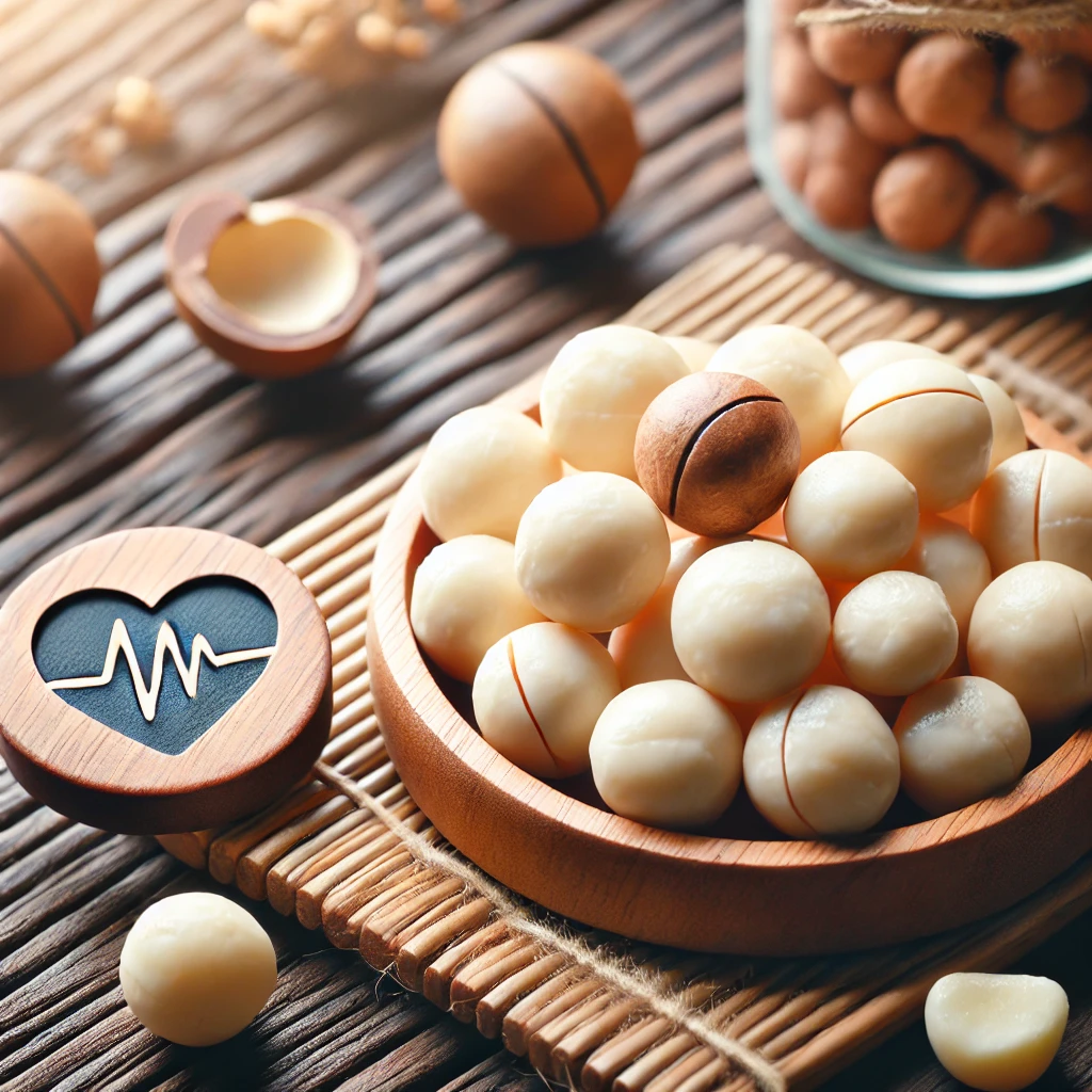 마카다미아는 심장 건강에 매우 유익합니다. 특히 불포화지방산이 풍부해 혈액 속 LDL 콜레스테롤(나쁜 콜레스테롤) 수치를 낮추고, HDL 콜레스테롤(좋은 콜레스테롤)을 높여줘요. 이는 심혈관계 질환 예방에 중요한 역할을 합니다.