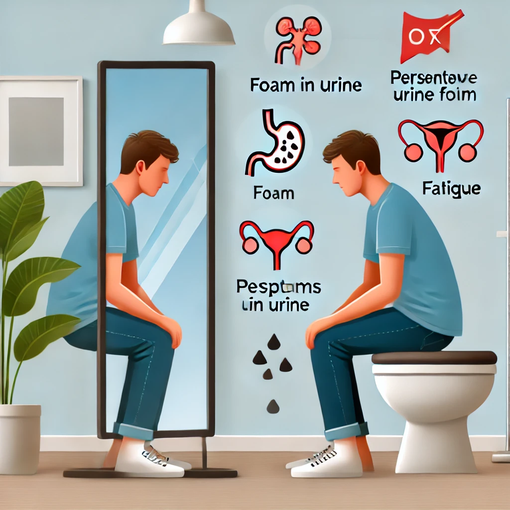 - 단백뇨: 소변에 단백질이 섞이는 경우, 거품이 생기고 오래 지속됩니다.
